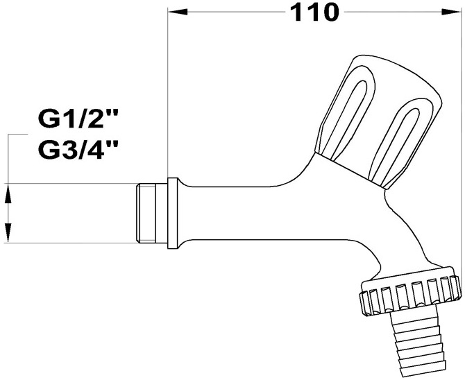 Mofém fali kifolyószelep tömlővéggel 1/2"-3/4"