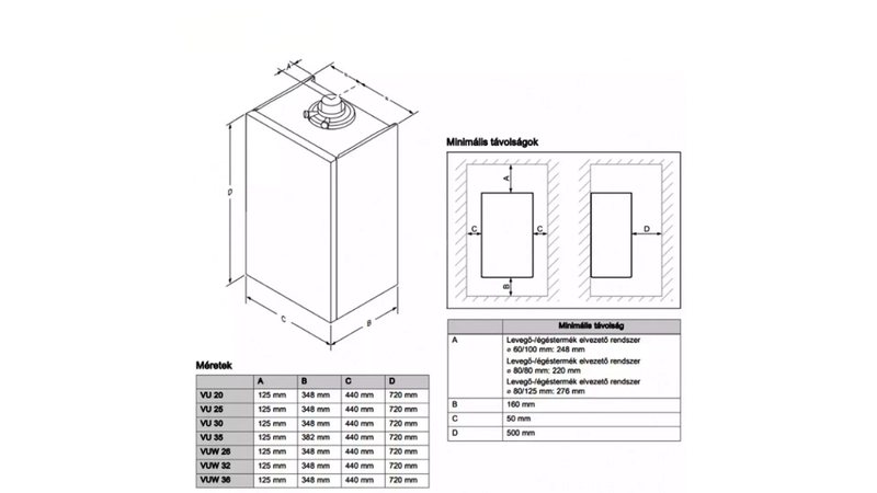 Égéstermék kivezetés: 60/10080/12580/80 mm