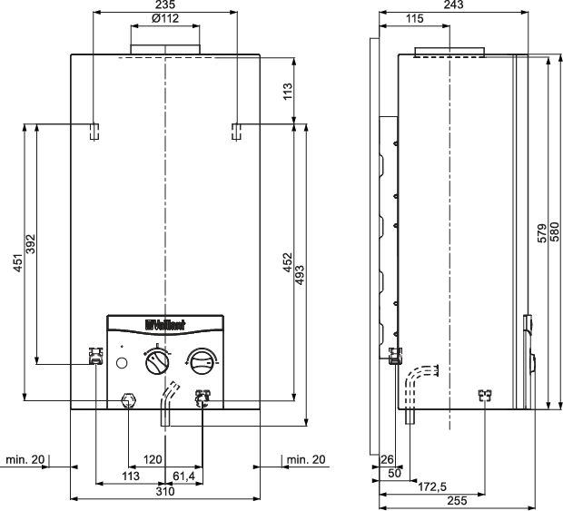 Vaillant atmoMAG mini 114/1 G kéményes átfolyós gázüzemű vízmelegítő generátoros gyújtású - Nem rendelhető