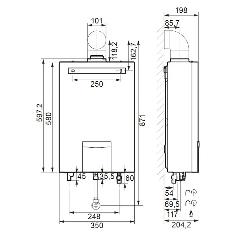 Gázüzemű, átfolyó rendszerű zárt égésterű vízmelegítő decentrális és csoportos melegvíz-ellátásra.
