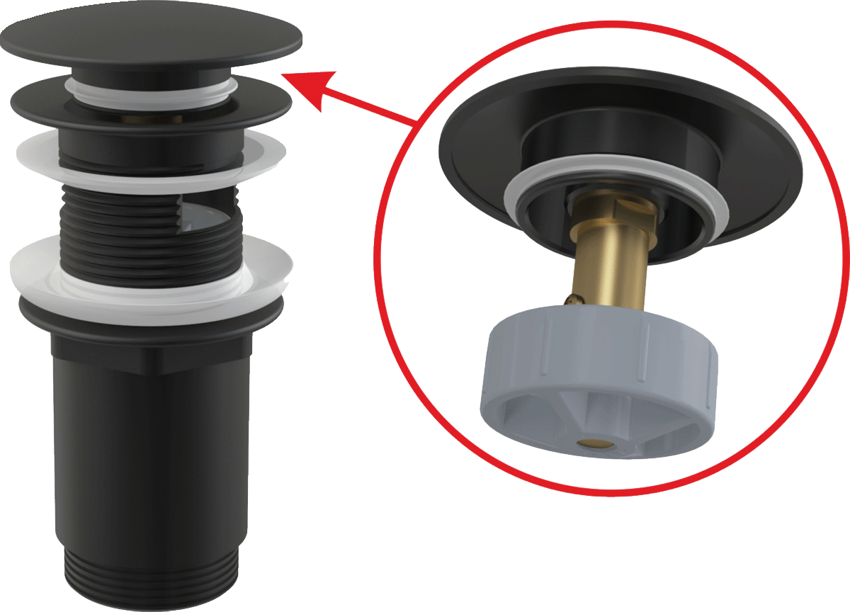 ALCA CLICK-CLACK mosdó leeresztő túlfolyóval, fémből, nagy fekete dugóval.