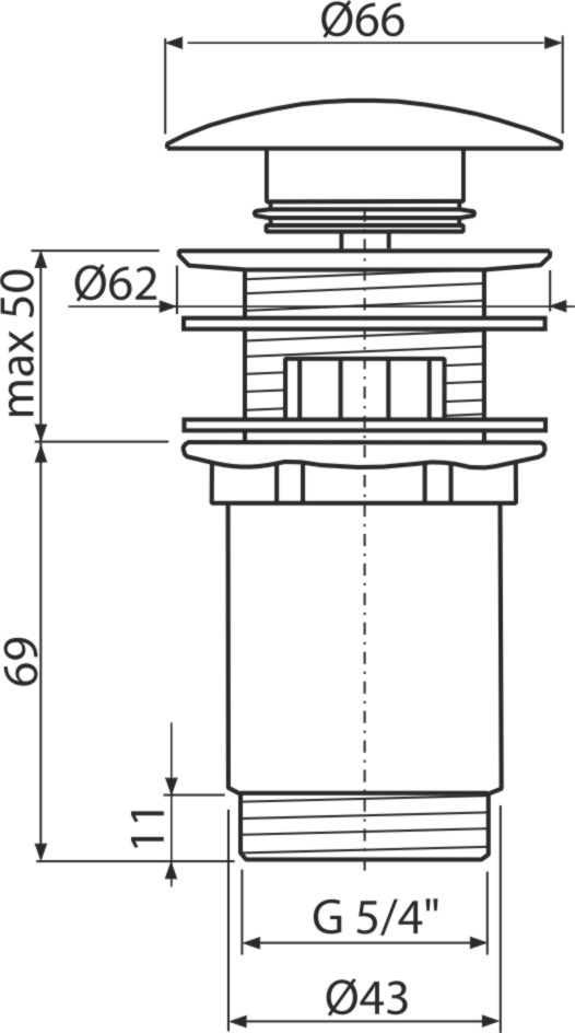 Alca A392 Click-clack mosdó leeresztőszelep 5/4" túlfolyóval, fémből, fekete dugóval