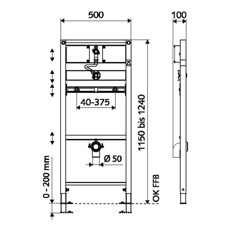 115 cm magas vizelde modul COMPACT II falsík alatti öblítőszeleppel.