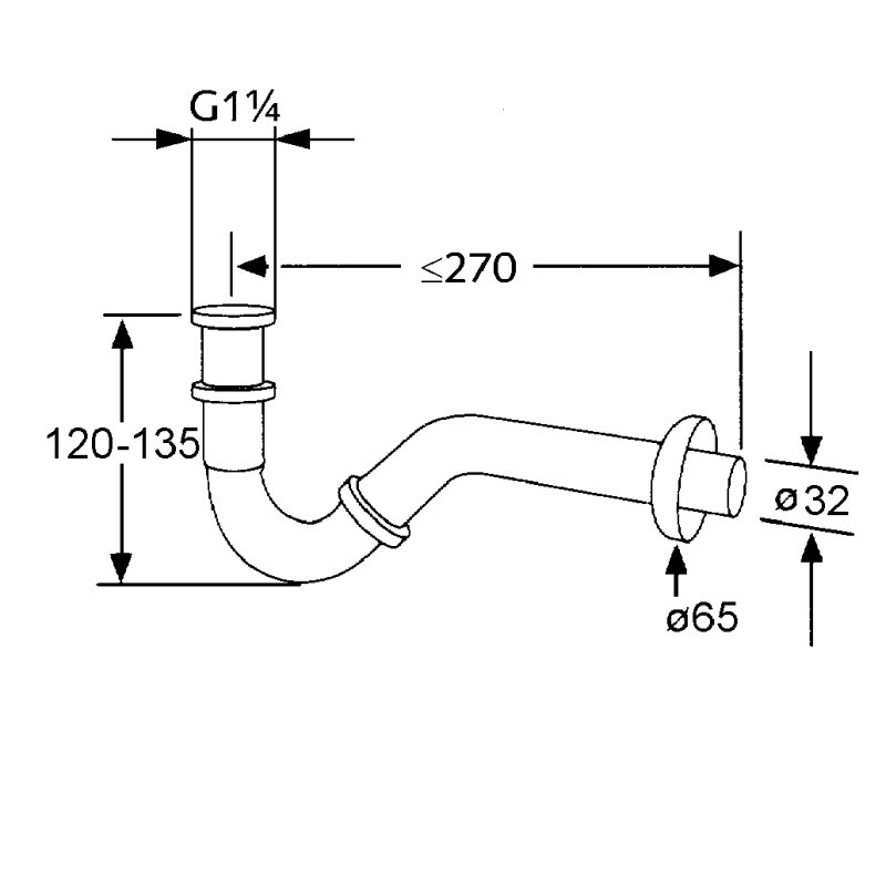 Kludi bidé csőszifon G 5/4"x32 mm, 32x200 mm-s lefolyóívvel, rozettával.