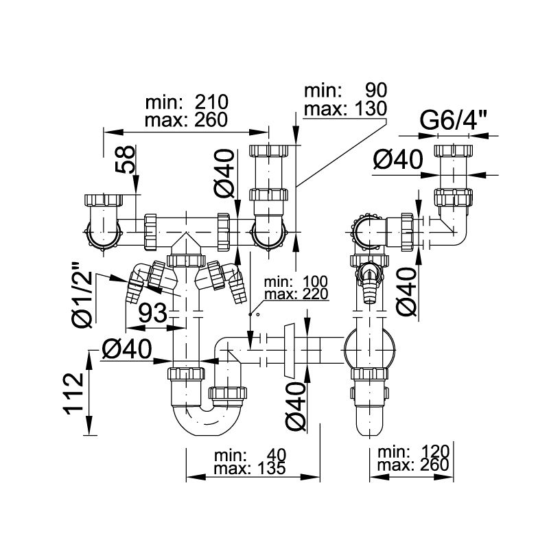 Vízbűzzárral felszerelve, leeresztő szelep nélkül.