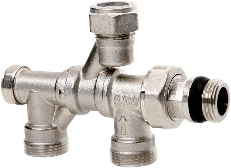 Alsó szeleptest átkötőcsöves radiátor bekötéshez.Univerzális test, alsó és fali bekötéshez is alkalmas.