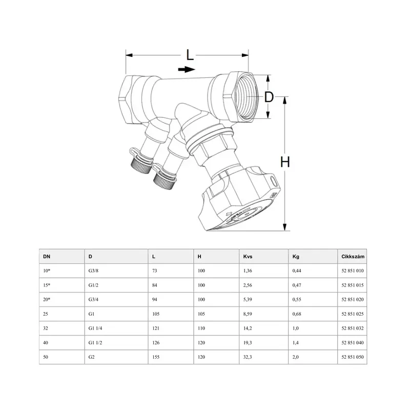 TA Stad beszabályzó szelep, ürítőcsonk nélkül DN50