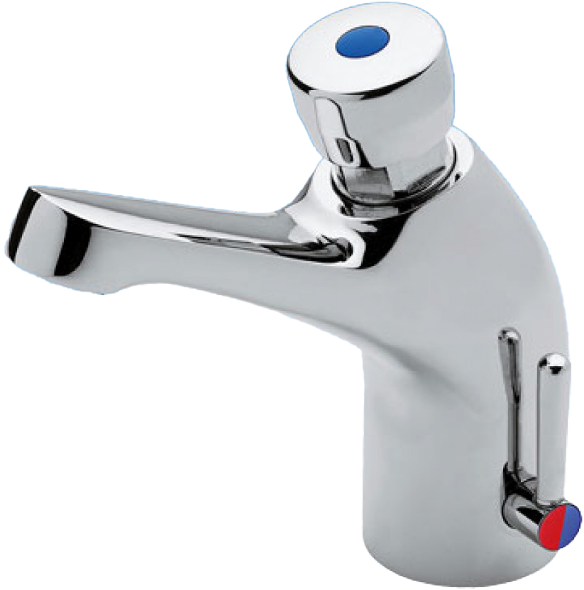 Az időzített, nyomógombos, keverőkaros, hideg-melegvizes mosdócsaptelepünk porcelán és rozsdamentes mosdókagylóra egyaránt felszerelhető.