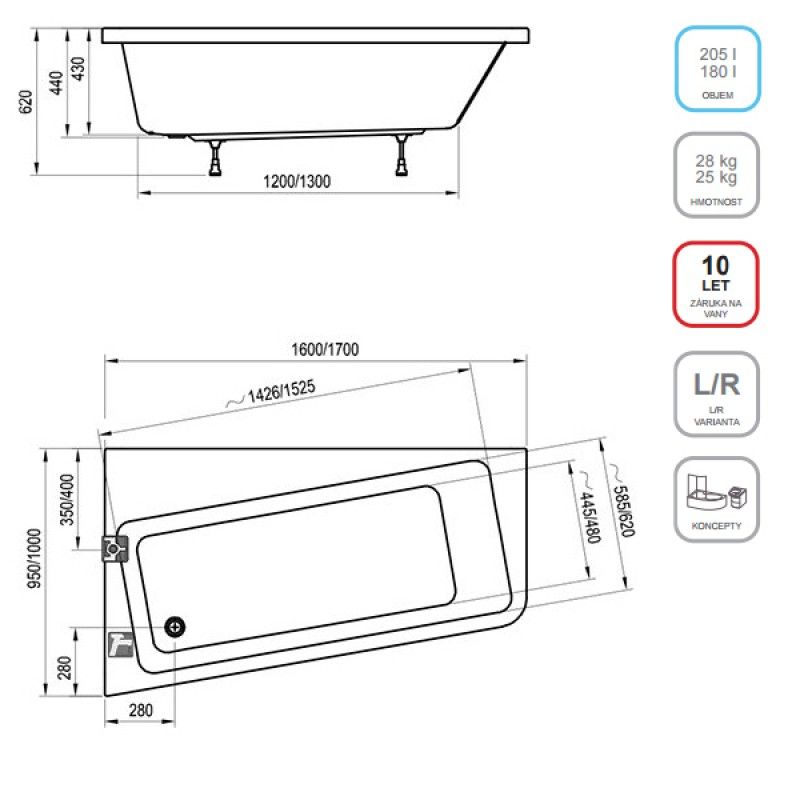 Aszimmetrikus kád mindazok számára, akik kedvelik a klasszikus kádakat illetve méltányolják a hozzáadott értékeket.