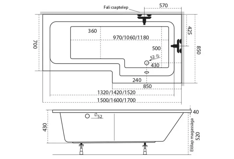 Kialakítás: aszimmetrikus kád