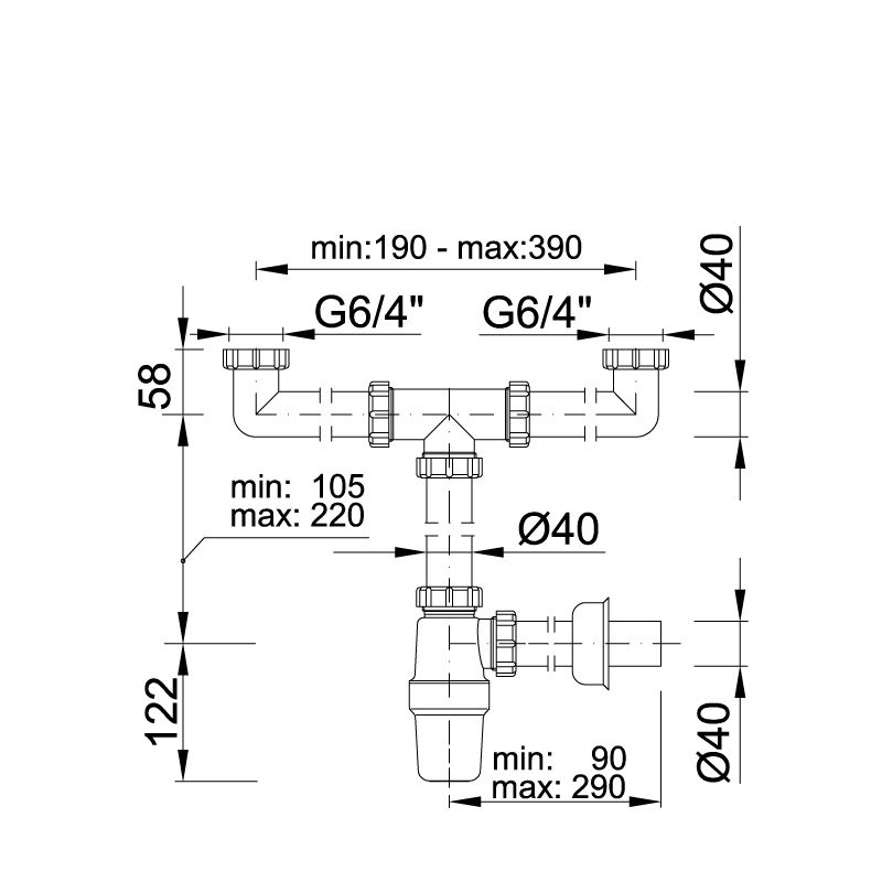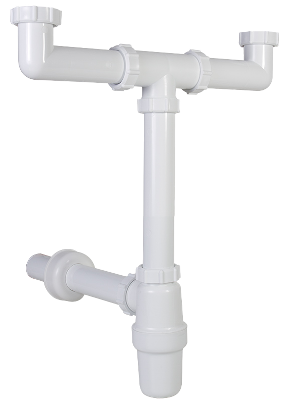 Kétmedencés mosogatószifon, leeresztőszelep nélkül, O40 mm-es elfolyással .