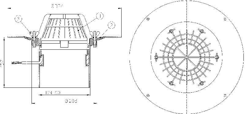 HL62/1 Tetőlefolyó DN110, szigetelőkarimával, szorítóelemmel