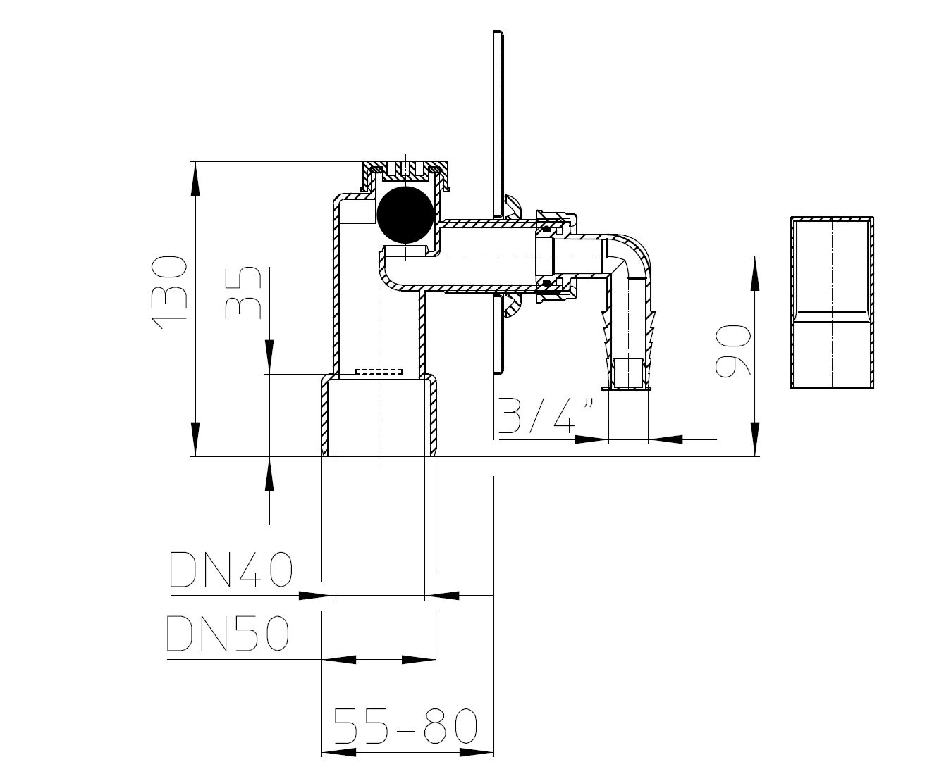 HL440 mosógép szifon, golyós bűzzárral, falba süllyesztve
