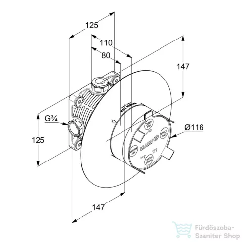süllyesztett csaptelep vezérlőegysége és látható eleme