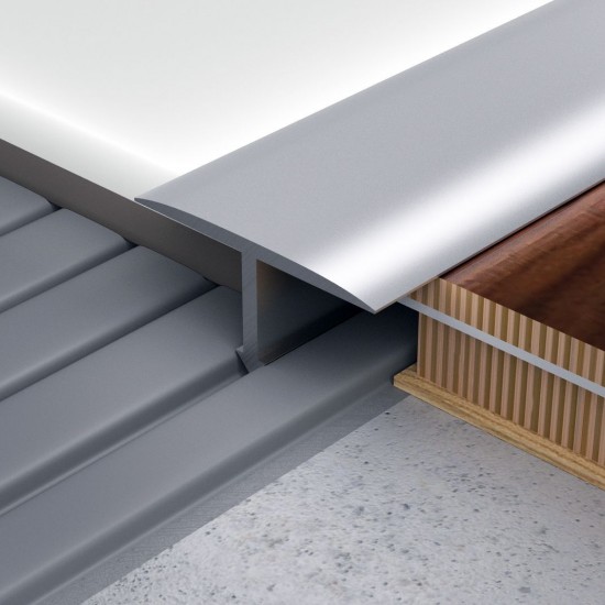 A lapos és széles burkolatváltó T-profil univerzális felhasználású és esztétikus megjelenésű.
