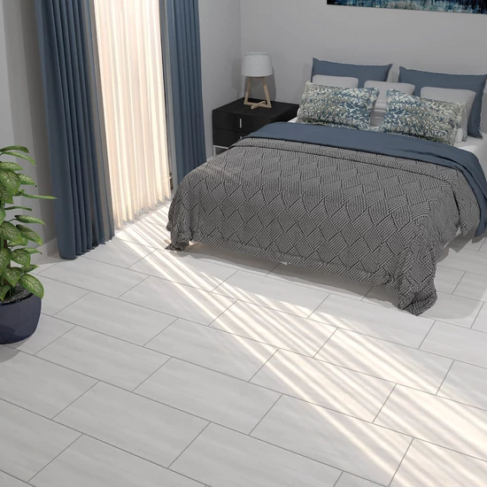 Időtálló fahatású modern matt fehér padlólap.