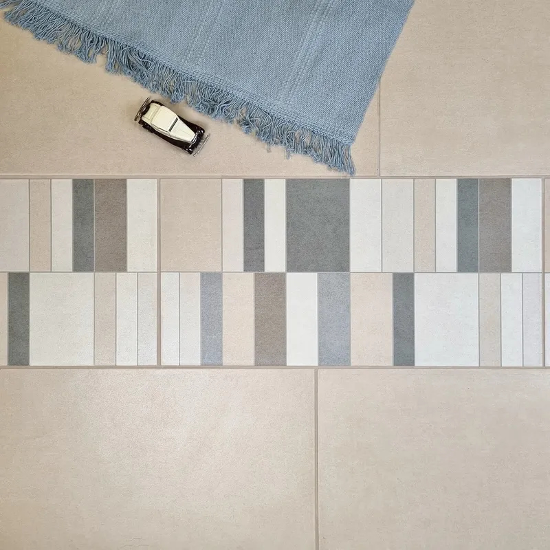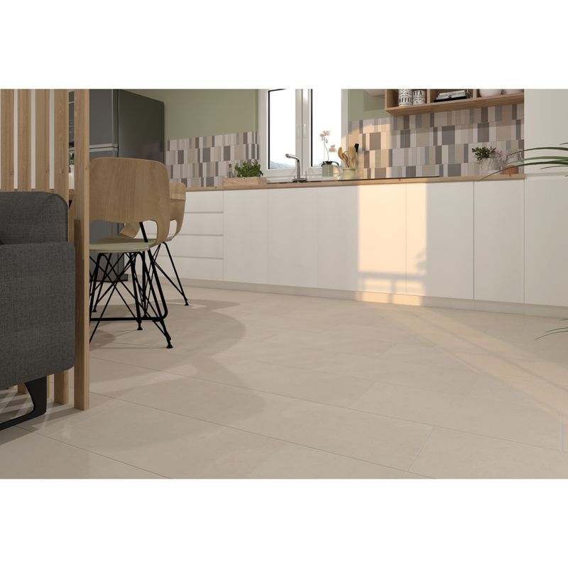 Betonhatású modern stílusú matt bézs színű padlóburkoló.