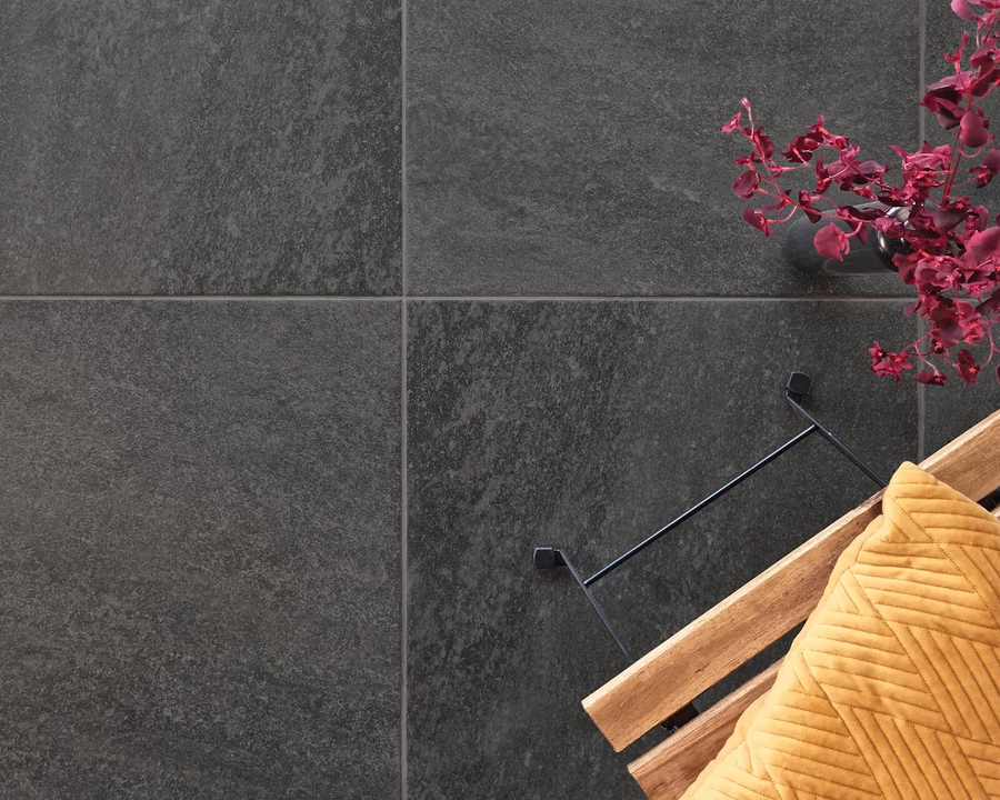Modern antracit nagy méretű kül- és beltéri padlólap.