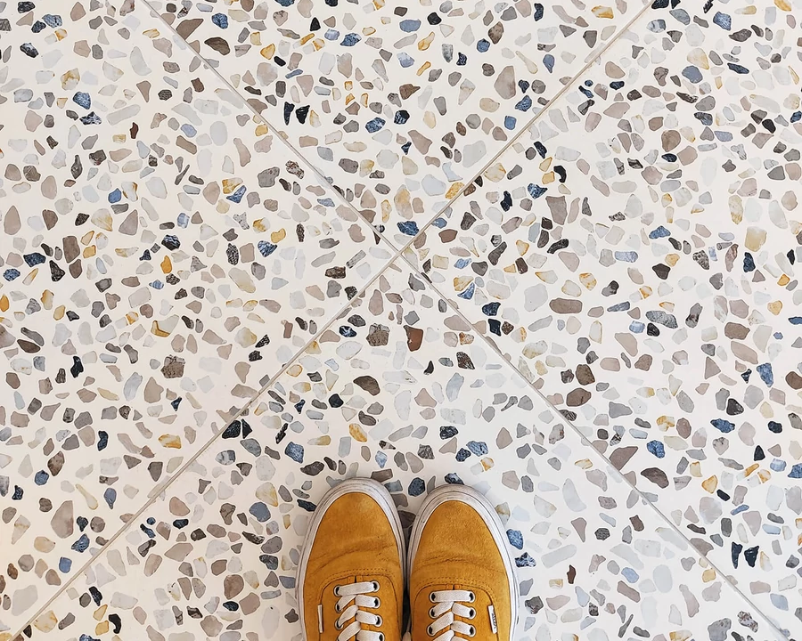 Többszínű matt padlóburkolat.