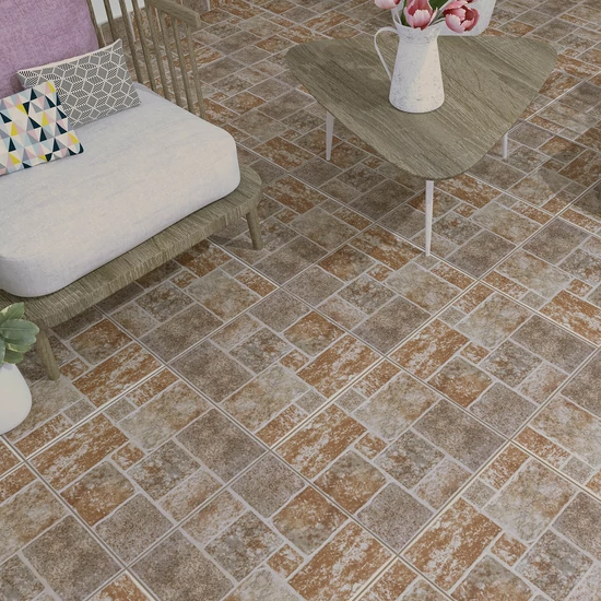 Kőhatású matt sötét terrakotta natúr padlólap kül- és beltérre egyaránt megfelelő választás.