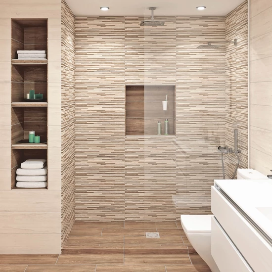 Időtálló fahatású többszínű matt modern stílusú padlódekor.