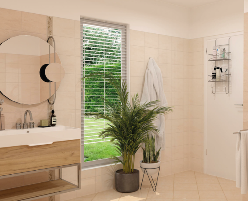 Fényes bézs színű, klasszikus fürdőszoba csempe.