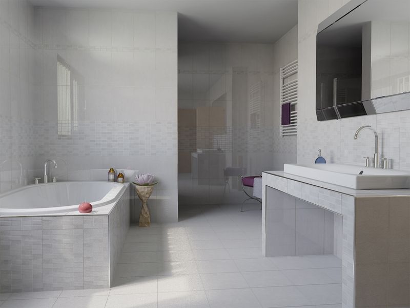 Fényes világos szürke klasszikus stílusú fürdöszoba, konyha csempe.