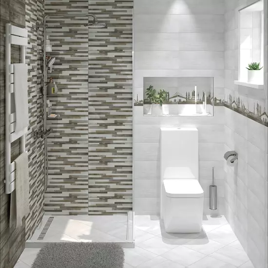 Matt világosszürke modern hatású fürdőszoba, konyha csempe.