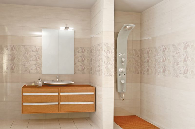 Fényes bézs klasszikus hatású fürdőszoba csempe.