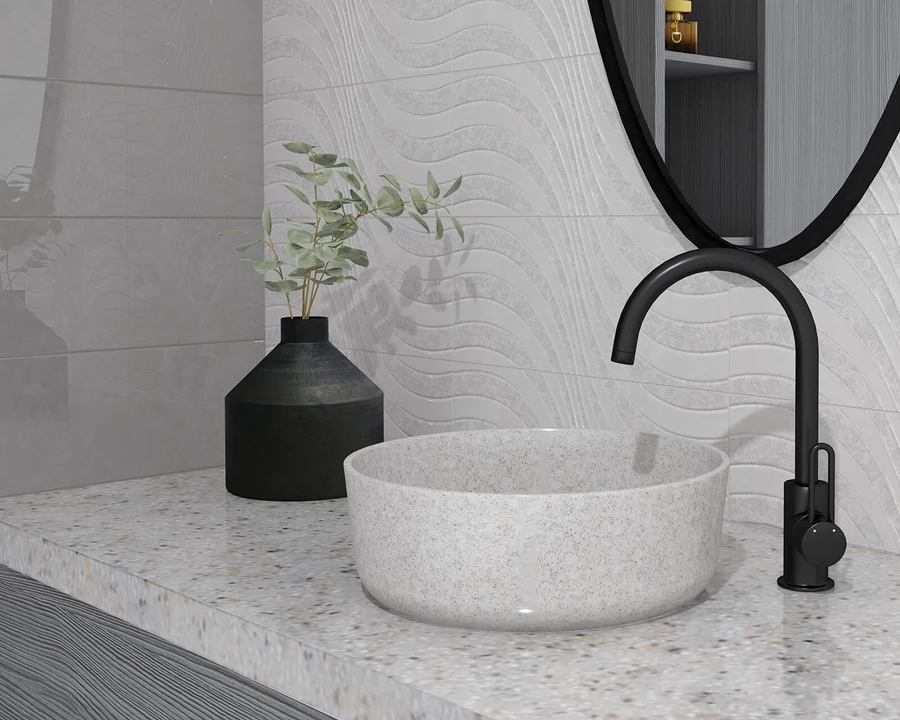 Fényes sötétszürke modern hatású fürdőszoba, konyha csempe.