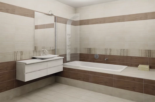 Matt bézs Időtálló fahatású modern fürdőszoba csempe.