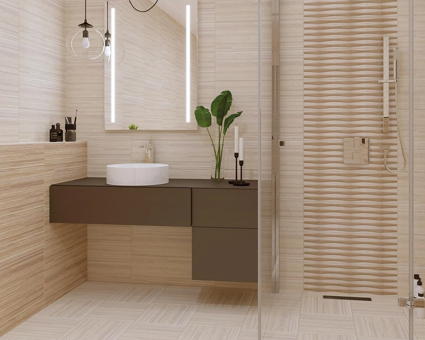Matt barna fahatású modern stílusú fürdőszoba csempe