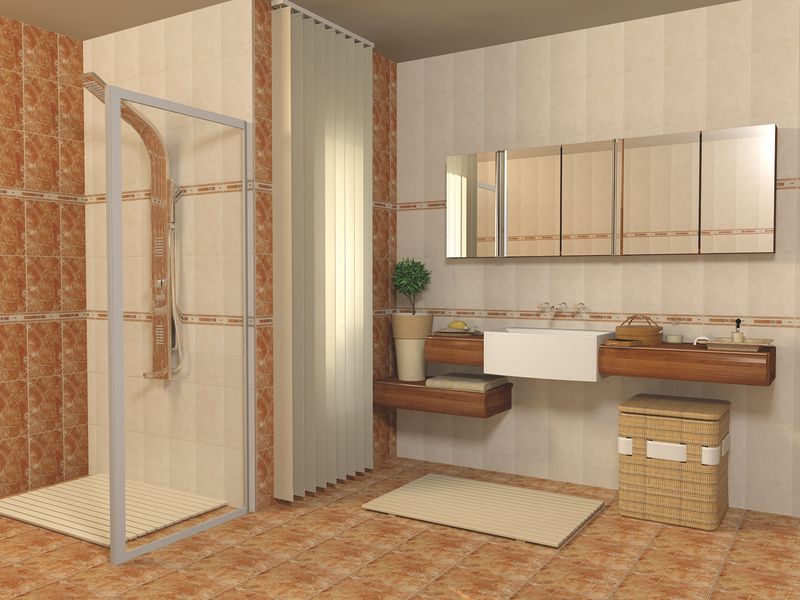 Fényes narancssárga márványhatású klasszikus stílusú fürdőszoba csempe.
