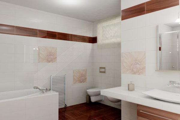 Fényes bézs fürdőszoba csempe.