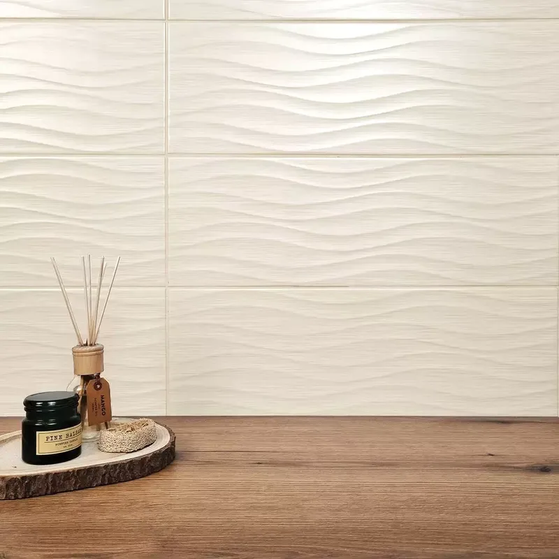 Matt , elefántcsont színű 3D hullám hatású fürdőszoba, konyha csempe.