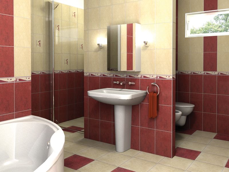 Fényes, többszínű, márványhatású fürdőszoba csempe.