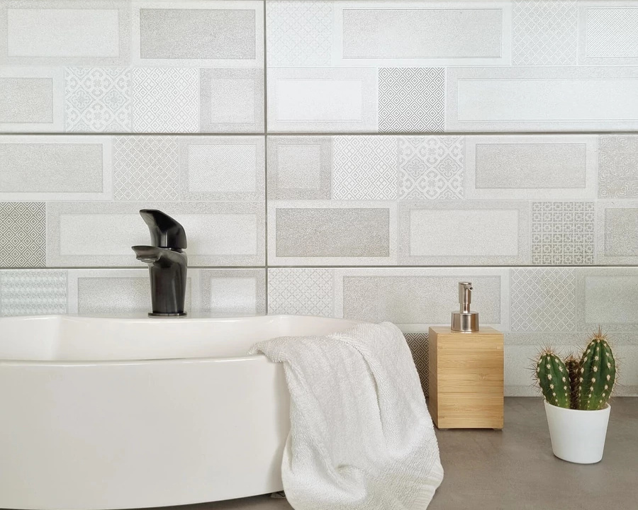 Matt többszínű, betonhatású fürdőszoba, konyha csempe.