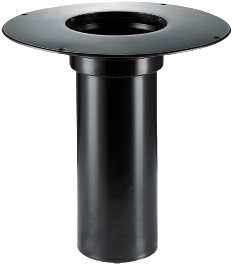 Kültéri vízelvezetés. Szigetelő karimás magasító elem a PP alapú FPO szigetelőfóliák fogadására alkalmas PP szigetelő tárcsával.