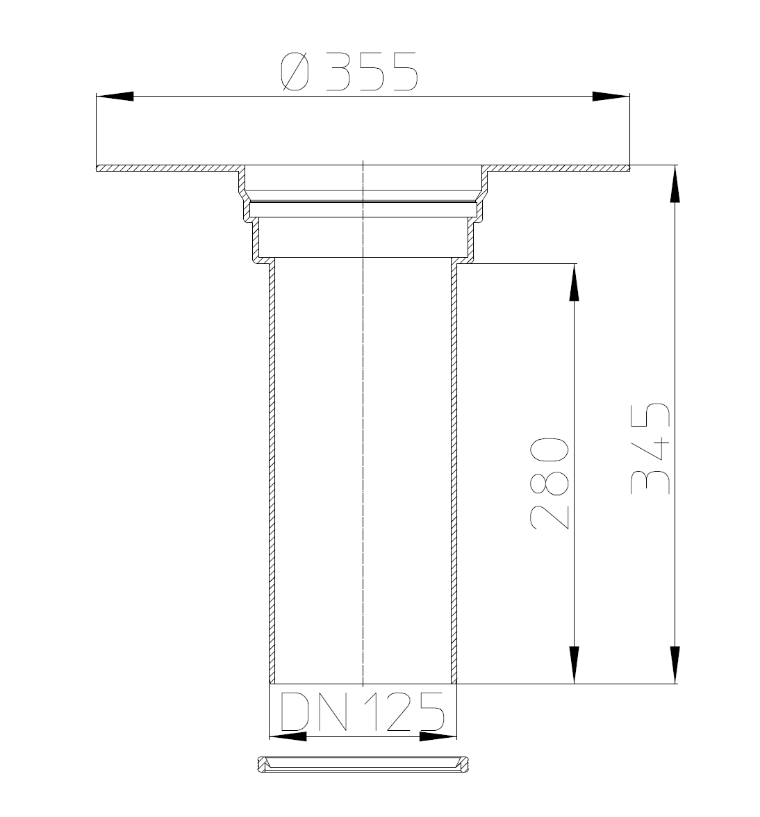 Csőcsatlakozás: 125 mm