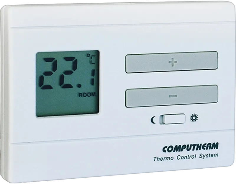 Az egyszerű mechanikus termosztátoknál pontosabb hőmérsékletmérést és beállítást tesz lehetővé. Olyan helyre ajánlott, ahol nincs szűkség a programozhatóságra, de fontos a kapcsolási pontosság és a szobahőmérséklet kijelzése. Minden olyan kazánhoz használható, mely kétvezetékes csatlakozással rendelkezik a szobatermosztát bekötés részére. A Computherm Q3 digitális szobatermosztát hőmérsékletmérési tartománya: 5-35 C közötti (0,1 C-os lépésekben) A beállítható hőmérséklet tartománya: 5-35 C között (0,5 C-os lépésekben) A Computherm Q3 digitális szobatermosztát választható kapcsolási érzékenysége: 0,1-0,2 C. A kapcsolható feszültség: 24 V AC / DC .... 250 V AC,50 Hz. A Computherm Q3 digitális szobatermosztát két vezetékes bekötéssel. A Computherm Q3 digitális szobatermosztát terhelhetősége: 8 A (2 A induktív terhelés) Az elem feszültsége 2x 1,5 V AA. A Computherm Q3 digitális szobatermosztát csak alkáli elemmel használható.