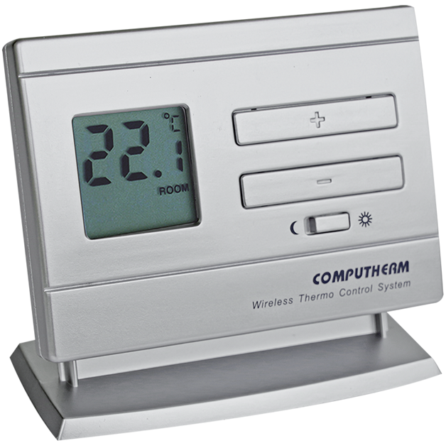Computherm Q5RF TX vezeték nélküli digitális szobatermosztát vevőegység nélkül a Computherm Q5RF és Q8RF multizónás termosztátokhoz, a zónák számának bővítéséhez és a Computhem Q1RX dugalj vezérlésére szolgál. Egyszerű és praktikus hőfokszabályozást tesz lehetővé 0,5 °C lépésekben.