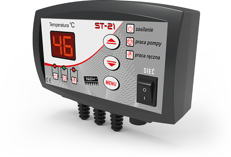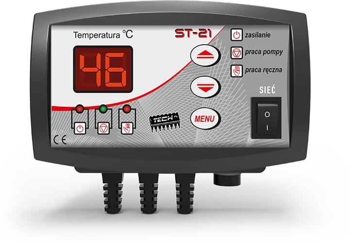 Az EU-21 szabályozó (LED kijelzővel) a KF szivattyú vezérlésére szolgál. A szabályozó feladata a szivattyú bekapcsolása, amikor a hőmérséklet eléri a beállított értéket, és kikapcsolás, amikor a kazán lehül a beállított hiszterézis érték alá. Az ilyen üzemmód megakadályozza a szivattyú felesleges aktiválását, amely lehetővé teszi az áram megtakarítását, valamint meghosszabbítja a szivattyú élettartamát és javítja annak megbízhatóságát. Az EU-21 szabályozó termosztátként is szolgálhat, ha a beállított hőmérséklet elérése után bekapcsolja a szivattyút. A vezérlő rendelkezik Anti-Stop funkcióval is, amely megakadályozza a szivattyú letapadását az évszakon túl (a szivattyú kb. 10 naponta kapcsol be 1 percig). A fagyásgátló funkció kiegészítő védelem, amely megakadályozza a víz fagyását a létesítményben (amikor a hőmérséklet 6 ° C alá süllyed, a szivattyú véglegesen bekapcsol).