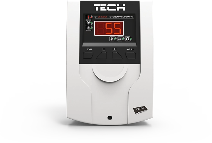 Az  EU-21 CWU-HMV szabályozó egy univerzális szabályozó, amely két hőmérséklet-érzékelővel van felszerelve a keringtető szivattyú vezérlésére. A szabályozó feladata a szivattyú bekapcsolása, ha az érzékelő hőmérsékletének különbsége meghaladja a beállított értéket (T2-T1 ? ?), kivéve, ha T2 ?Minimális küszöb a szivattyú aktiválásához. Vegyestüzelésű kazán használata mellett.