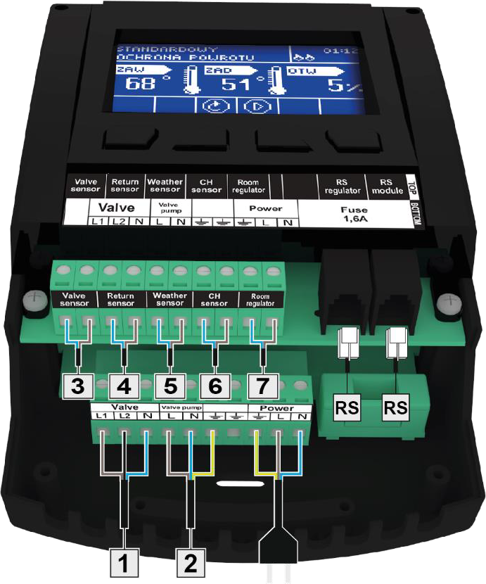 Az i-1 hőszabályozót három- vagy négyutas keverőszelep vezérlésére tervezték, további szivattyú csatlakoztatásának lehetőségével. Opcionálisan ez a vezérlő együttműködhet két további modullal, lehetővé téve a felhasználó számára, hogy legfeljebb három keverőszelepet vezéreljen.