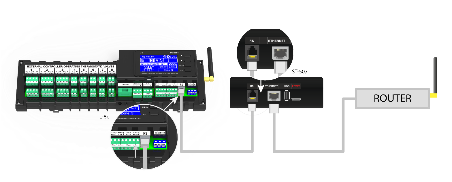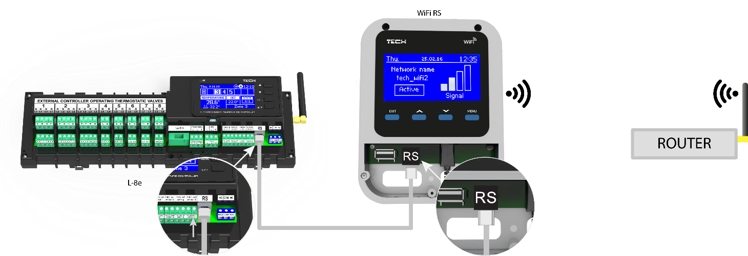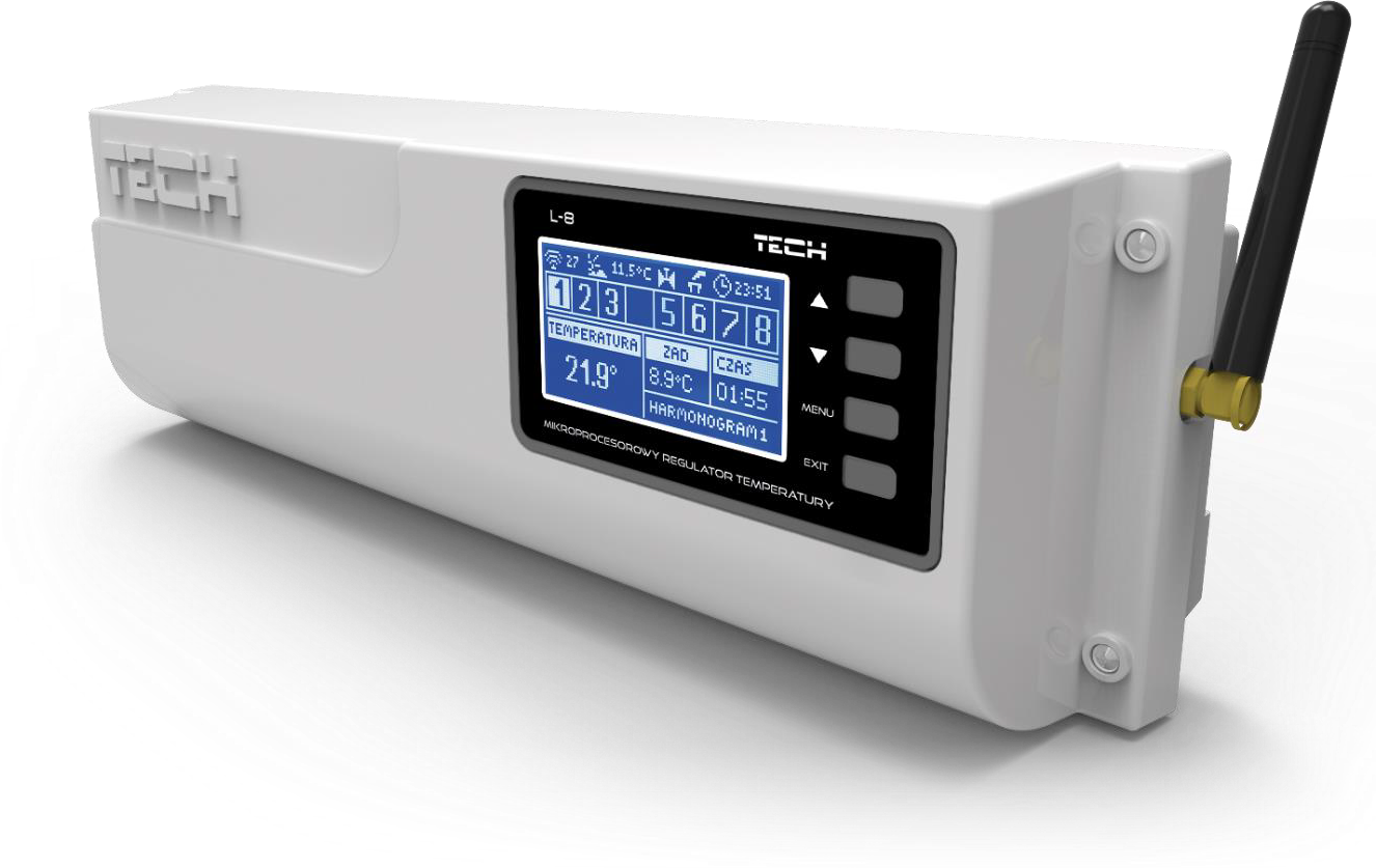 • Lehetőség az EU-505 Ethernet vagy EU-WiFi RS csatlakoztatására a fűtésrendszer online irányításához