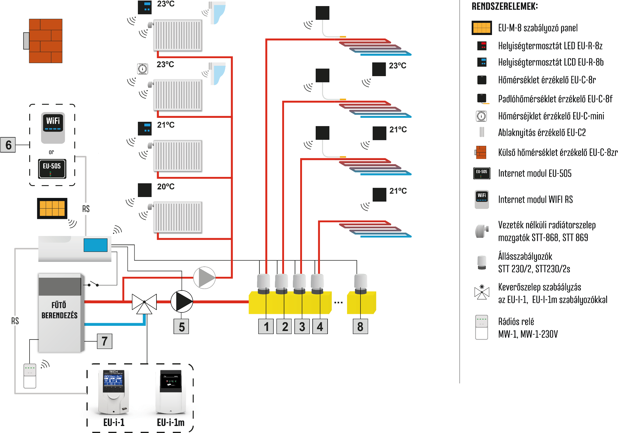 • Lehetőség 6db EU-MW-1 vagy EU-MW-1 230V végrehajtó modul csatlakoztatása