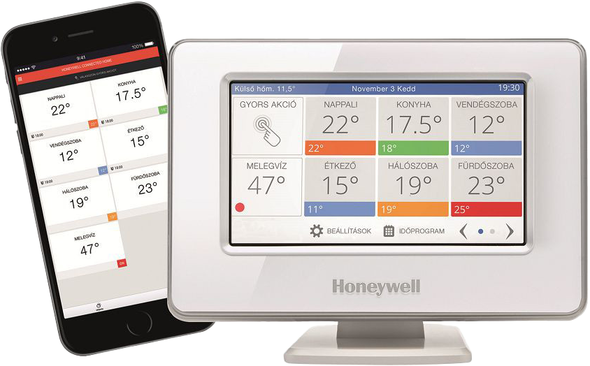 A Honeywell evohome rendszerével igény szerint szabályozhatóvá válik otthona fűtési és melegvíz-ellátó rendszere. Az akár 12 fűtési zónát és a használati melegvíz-ellátást vezérlő evohome központ beépítése lehetőséget ad az előreprogramozásra, okostelefonjáról irányított zónánkénti szabályozásra, tanuló funkciójának köszönhetően pedig az önszabályozásra. Ezzel a vezeték nélküli zónaszabályozó készlettel egyszerűen, csekély átalakítással fejlesztheti a már meglévő rendszerét. A Honeywell evohome Wi-Fi szettjével hatékony szabályozás és jelentős energiamegtakarítás érhető el.