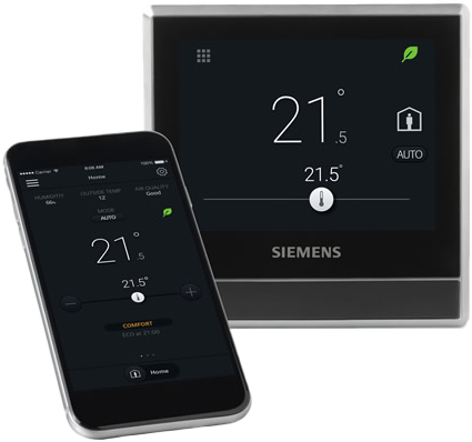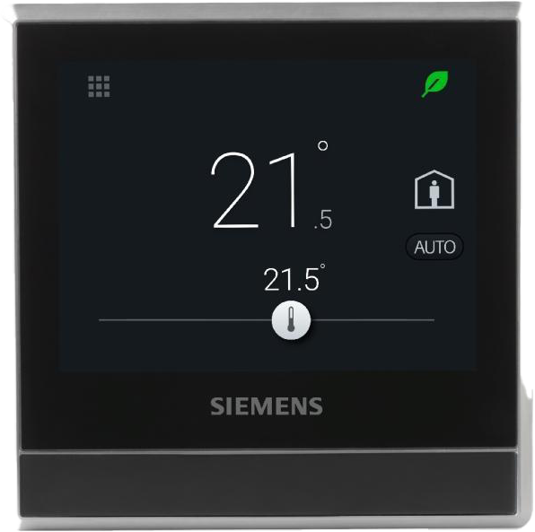 Siemens RDS110 vezetékes öntanuló okostermosztát színes 3,5" LCD érintőképernyős kijelzővel. Páratartalom és légminőség érzékelővel. Teljeskörű távelérési lehetőség laptopról, tabletről vagy okostelefonról.