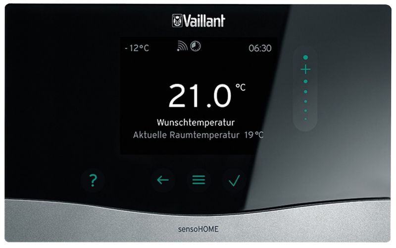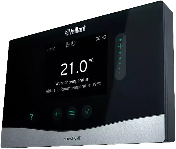 Vaillant VRT 380 sensohome egy vezetékes idő,-helyiséghőmérséklet szabályzó,amely gázfűtéses rendszerekkel kombatibiis . Egyszerű, könnyen beállítható napi és heti programok ,az érintőgombos háttérvilágított kijelzőn. A termosztát egykörből áll, és fagyvédelmi funkciókkal látták el.Ingyenes applikáció segítségével távolról is vezérelhető , ehhez szükséges van a sensonet modulra amely opcionálisan megvásárolható hozzá.