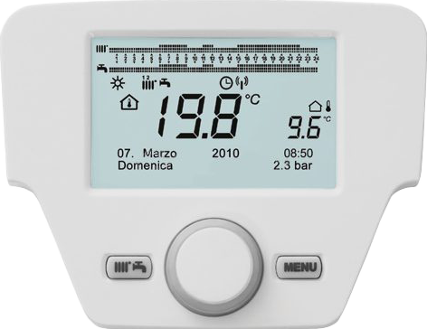 A távvezérlő alkalmas szobahőmérséklet vezérlésére, fűtési rendszer programozására.